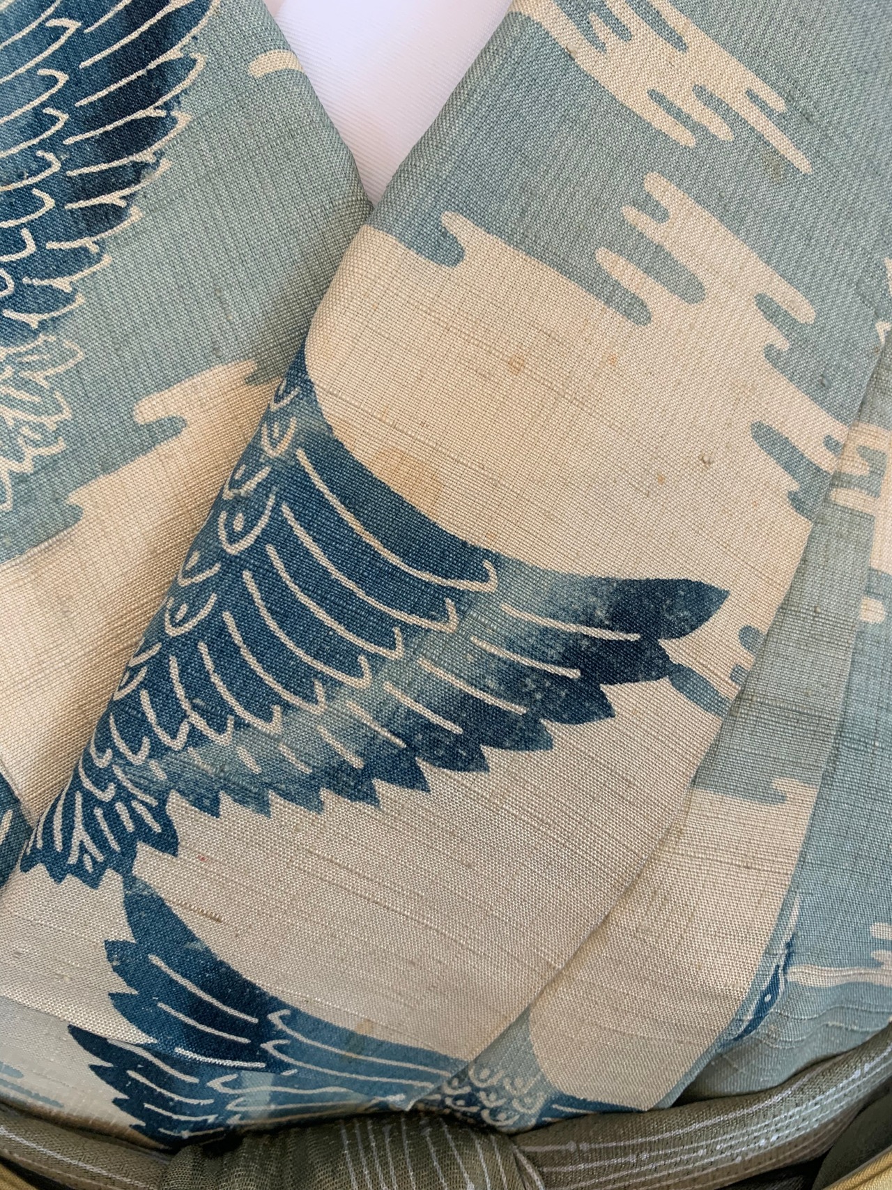 鳥柄の珍しい一方付け総柄の絵羽の紬です。