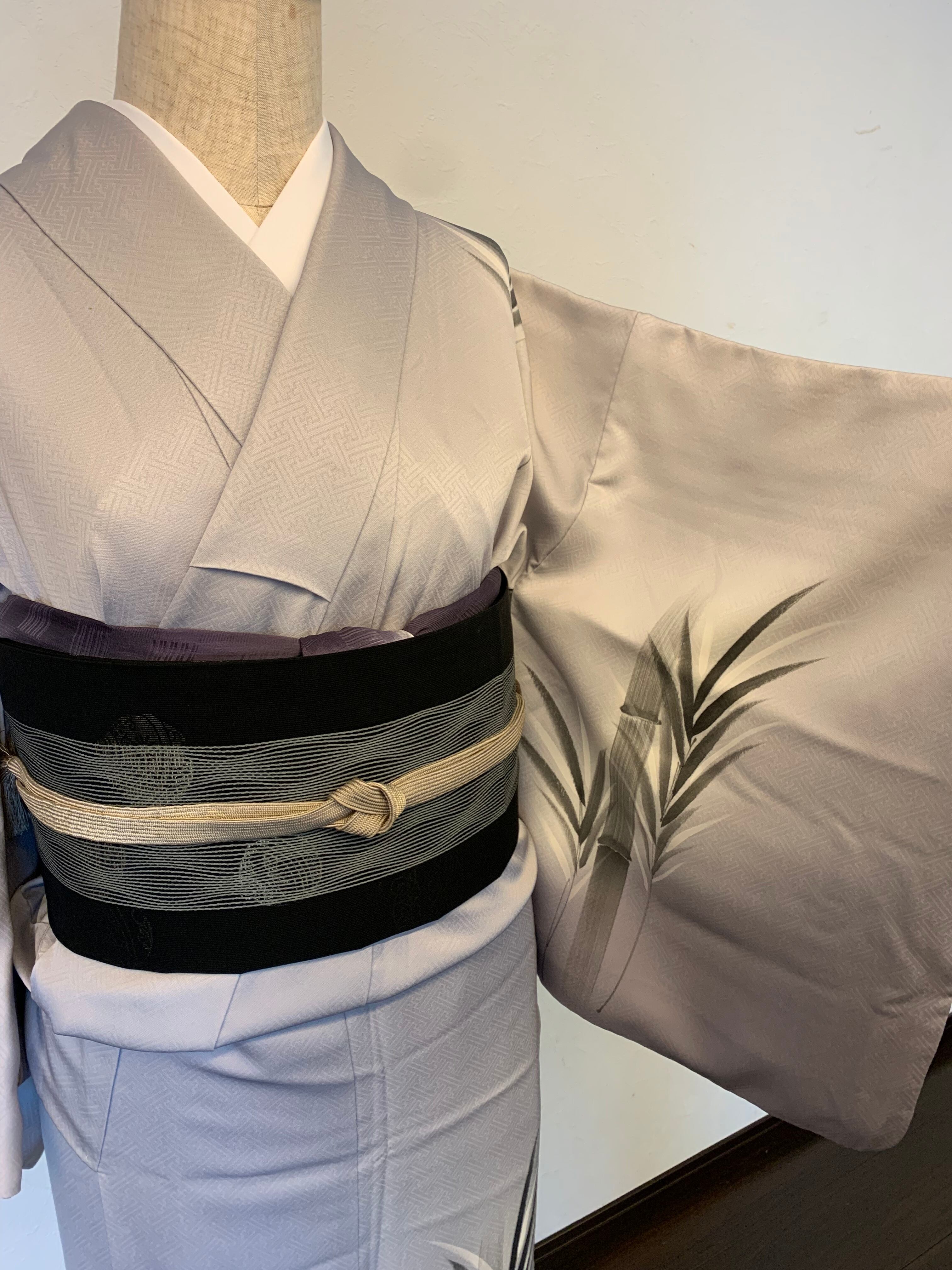 #着物#訪問着#フォーマル#花#絹#お出掛け#竹#墨
