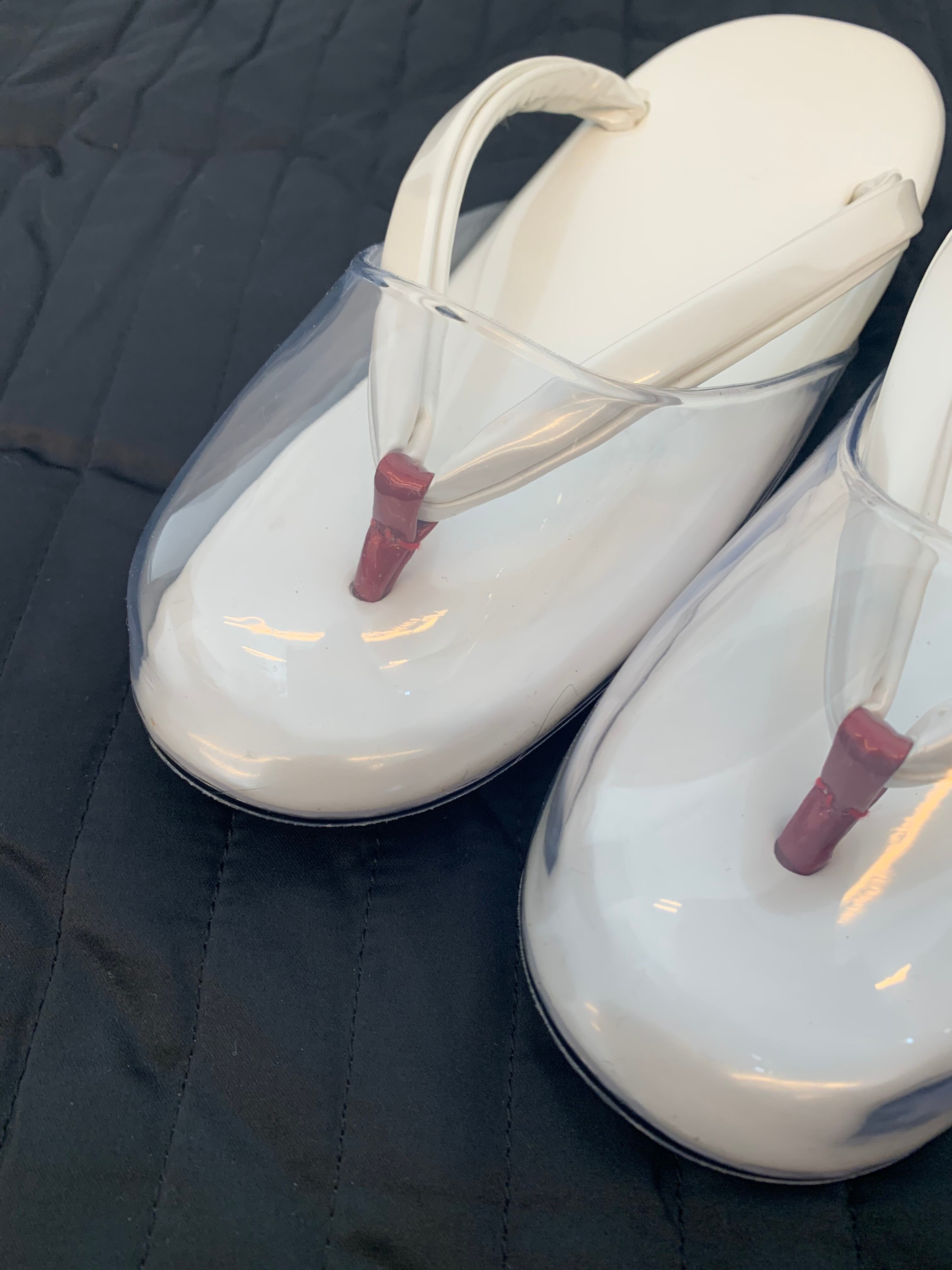 こちらの雨草履は白で前ツボが赤でとっても合わせやすいお草履です。